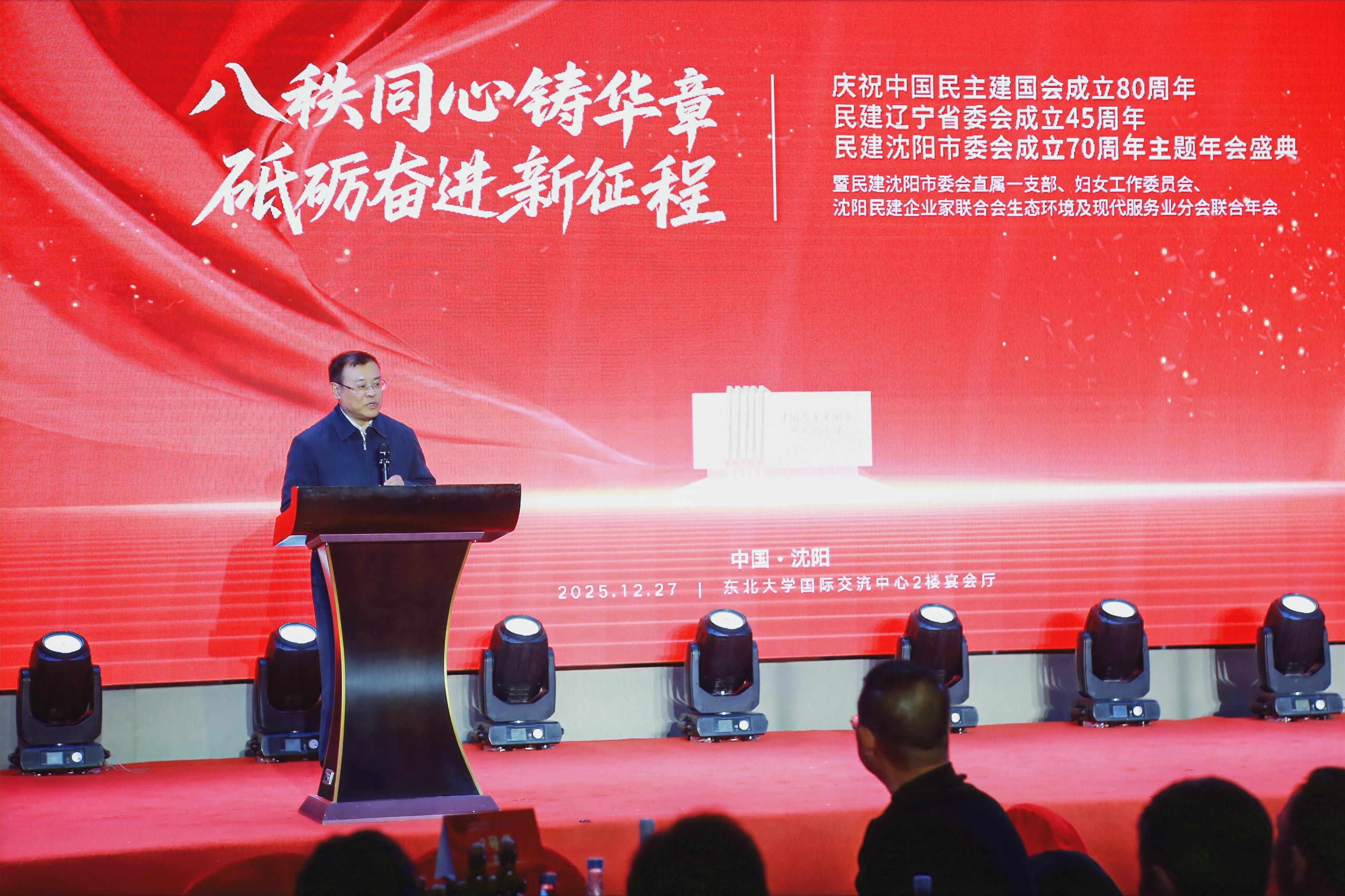 12月27日,民建沈阳市直一支部、妇女工作委员会、沈阳民建会员企业家联合会生态环境及现代服务业分会在东北大学国际学术交流中心联合举办“八秩同心铸华章、砥砺奋进新征程”主题年会。民建沈阳市委会主委范民、副主委刘金英参加会议。